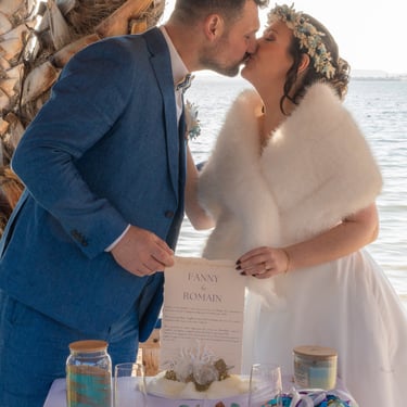 Un moment suspendu face à la mer, mêlant émotions, beauté naturelle et amour sincère.
